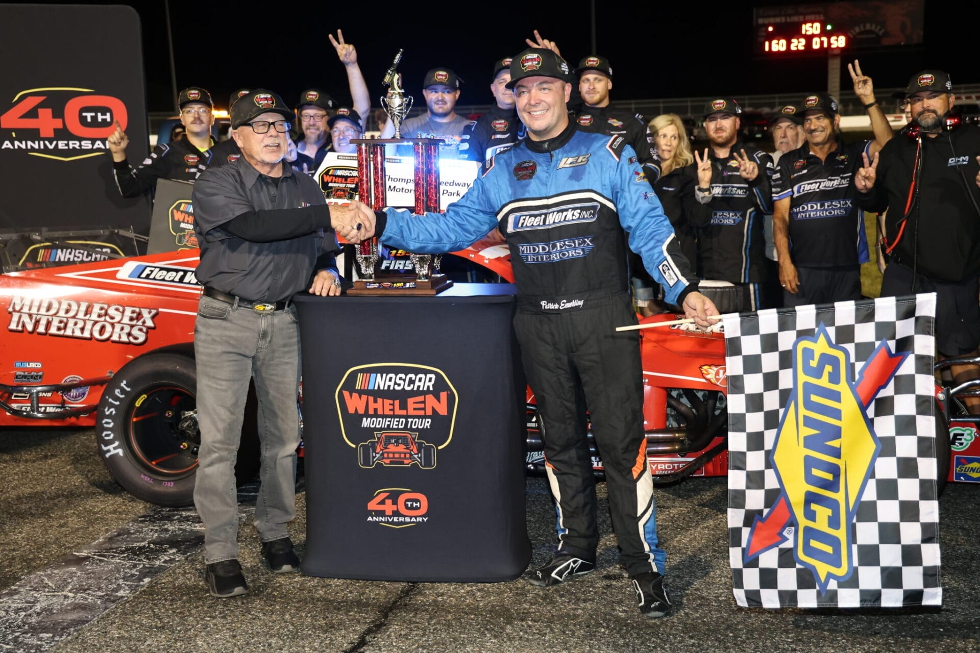Patrick Emerling Runs it Back in the Big Red Machine Tribute to take 750th NASCAR Whelen Modified Tour Checkers in front of Packed Thompson Grandstands