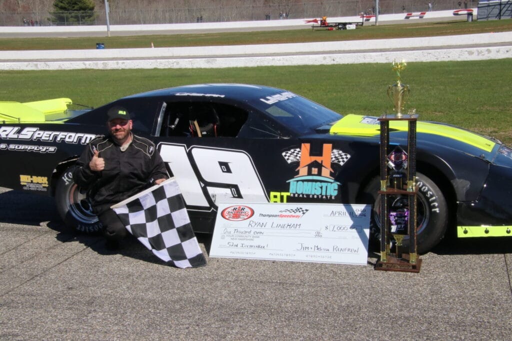 Thompson, CT — Sunny Saturday greeted the fans at Thompson Speedway to kick off the 52nd Icebreaker with thirty cars filling out the Monaco Modified field. Ronnie Williams quickly took the point with just 75 laps on the board to claim the $10,000 winners share at the end. Berndt would put the hammer down in his #11CT to steal the lead away from Williams with Jon McKennedy taking advantage of the backslide to take second. While McKenndy crept up on Berndt at the front, fans had their eye on Mike Christopher Jr. and Ron Silk as they made their way into the top five by lap thirty.