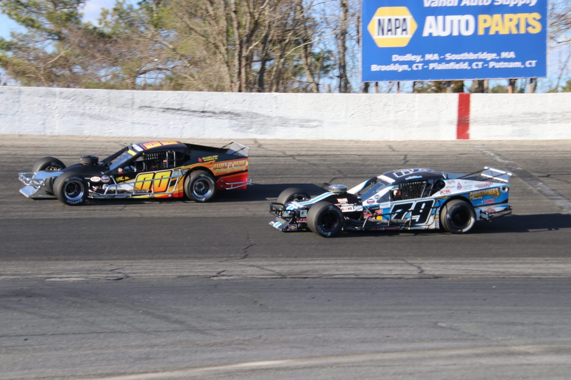 In one of the strongest fields in recent memory the Thompson Sunoco Modifieds roared to life for the first of two Icebreaker weekend appearances with longtime foes Keith Rocco and Todd Owen leading the field to green. The two competitors swapped the lead end-over-end for the fans on hand and those watching online on the North East Short Track Network. Later labeled a dogfight by the eventual winner, the two wily veterans fought hard with Danny Cates and former champion Jon Puleo waiting in the wings.