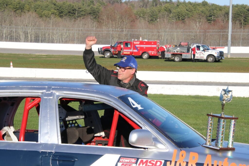 The Thunderstock Crown Vics rounded out the opening day showcase at Thompson Speedway with a 360-spin for polesitter Dustin Demers leaving John Williams, Jr. the big lead. Seven-time winner last season, Ethan Williams powered up to within striking distance of his father John but the ol’ man got it done for the final win of Icebreaker Saturday over son Ethan and John Dulac third.
