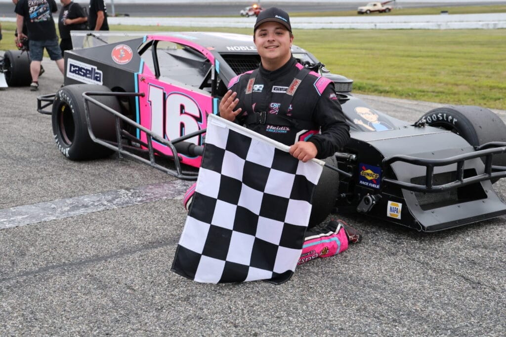 Jared Materas and rookie Jared Roy brought the Late Model field down to round out the Thompson 150 program Wednesday night. Roy quickly took over the lead as Brian Tagg and Jake Johnson battled for second side-by-side. Johnson broke away and took the lead over Roy at lap six and in classic style never looked back for another Late Model win on the highbanks with Jacob ‘Rowdy’ Burns and Tyler Chapman rounding out the final podium of a packed Wednesday program.